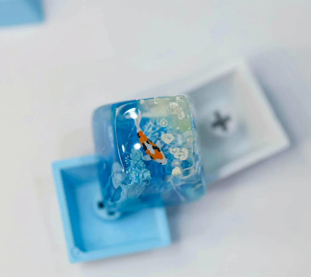 Resin keycaps are often praised for their high degree of customization, as artisans can embed elements like flowers, glitter, or even 3D-painted designs into the resin. Resin keycaps often have a translucent or glossy finish, adding to their visual appeal (DyKeycap, n.d.).